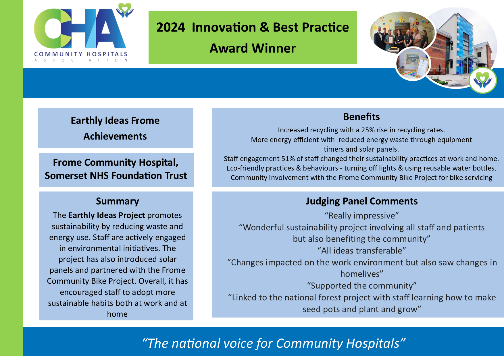 Green Initiative Winner – “Earthly Ideas Frome Achievements” submitted by Melissa Messenger & Peter Harvey from Frome Community Hospital, Somerset NHS Foundation Trust.