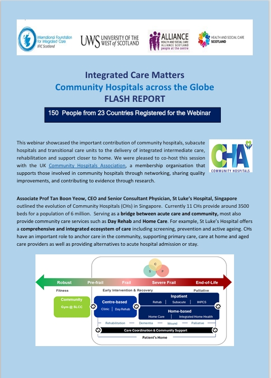 On the 8th of October, over 150 people from 23 countries joined this international webinar exploring the role of community hospitals, subacute hospitals and transitional care units in delivering integrated care and rehabilitation closer to home.