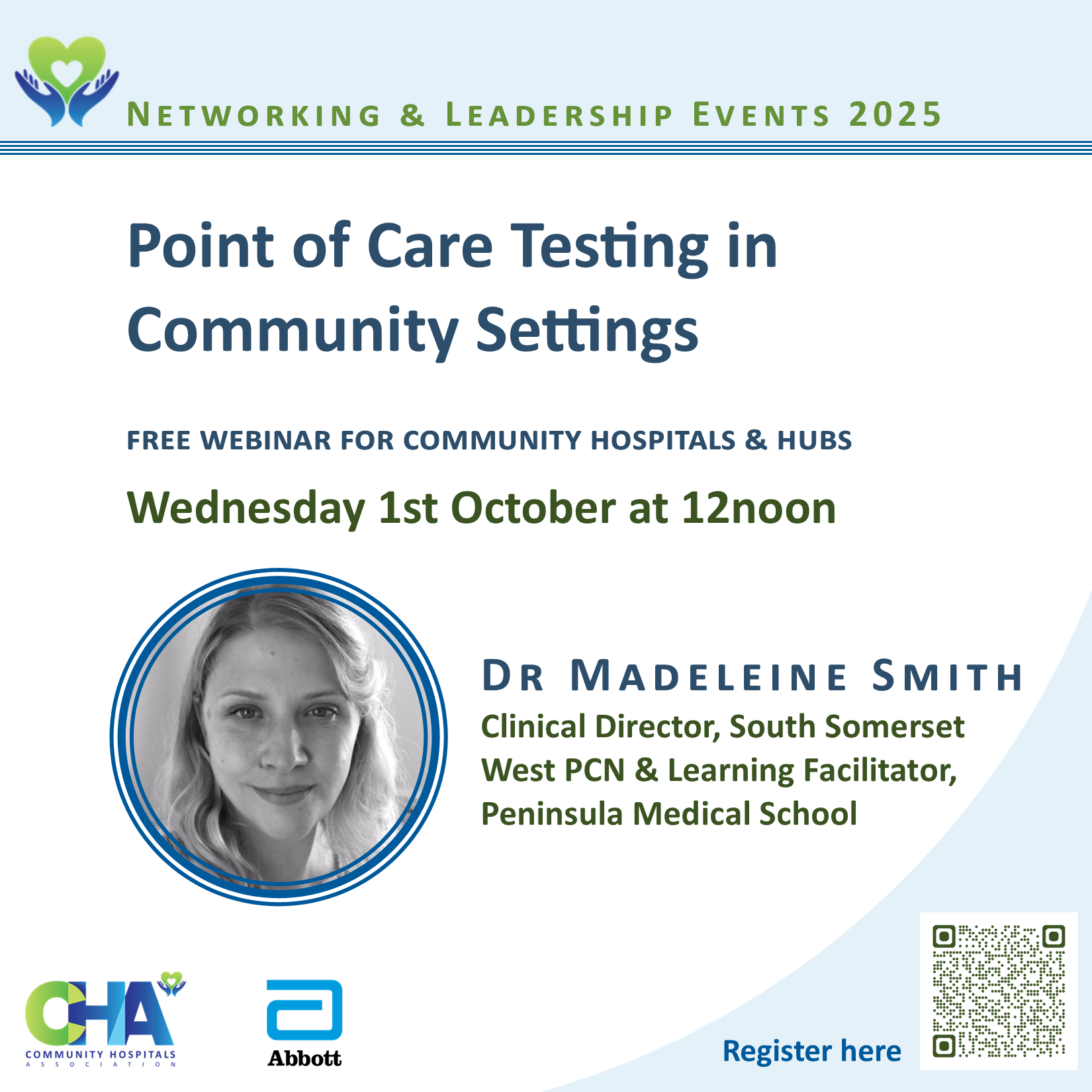 We are pleased to introduce a new series of online sessions designed to bring together senior healthcare colleagues from community hospitals with respected organisations and industry partners. Each webinar is shaped around a shared interest or challenge and includes a short talk followed by an open discussion and time to ask questions. These sessions are a chance to hear directly from organisations who want to work with community hospitals in meaningful ways. Whether it’s exploring new tools, ways of working or fresh ideas, the focus will always be on what’s helpful, practical and relevant to our hospitals and the people we care for. If you're in a leadership role, involved in developing services, or simply interested in how we can work better together, you’re warmly invited to join us. These events are free to attend.